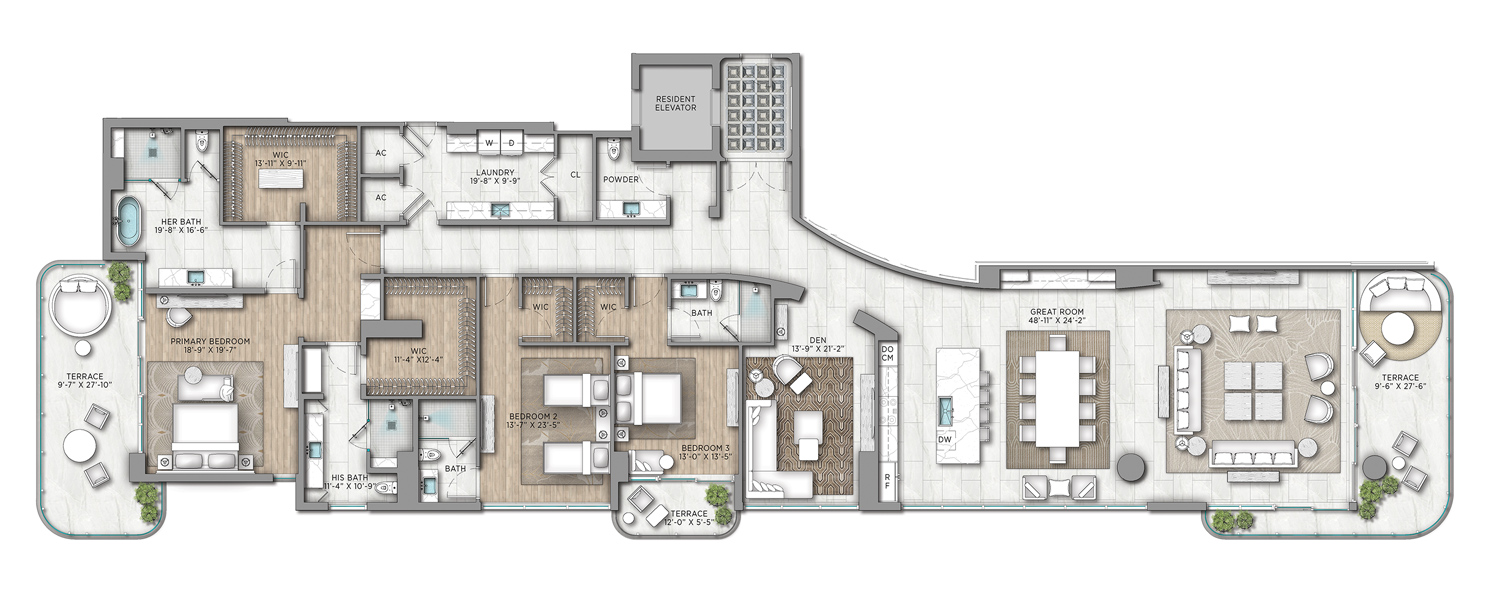 ORAL REPRESENTATIONS CANNOT BE RELIED UPON AS CORRECTLY STATING THE REPRESENTATIONS OF THE DEVELOPER. FOR CORRECT REPRESENTATIONS, MAKE REFERENCE TO THIS BROCHURE AND TO THE DOCUMENTS REQUIRED BY SECTION 718.503, FLORIDA STATUTES, TO BE FURNISHED BY A DEVELOPER TO A BUYER OR LESSEE. Stated interior square footage is measured to the exterior face of exterior walls and to the centerline of interior demising walls or to the exterior face of walls adjoining corridors or other common elements without excluding areas that may be occupied by columns or other structural components. This method of measurement varies from, and is larger than, the dimensions that would be determined by using the description and the definition of the Unit set forth in the Declaration (which generally only includes the interior airspace between the perimeter walls and excludes structural components). For reference, the area of the unit, determined in accordance with the unit boundaries set forth in the Declaration is set forth in Exhibit “3” to the Declaration. All dimensions are approximate and may vary with actual construction. Note that the stated interior square footage includes a portion of the Unit which is a non-contiguous storage closet located in the core of the building which is not depicted herein. See Exhibit “2” to the Declaration for the location and dimensions of the non-contiguous storage closet which is part of the Unit and included in the interior square footage described here in. Printed 12 20, 2025.